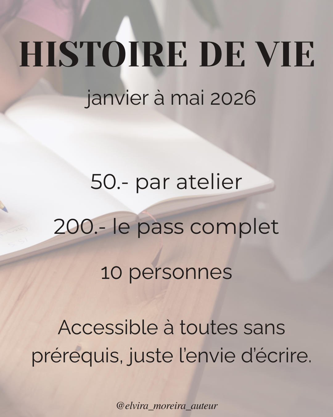 Aucun prérequis. Seulement l’envie d’écrire et de s’offrir un moment pour soi.